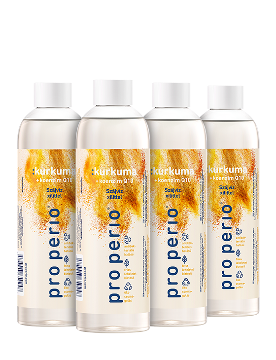 Antibacterial mouthwash with turmeric and coenzyme Q10 prevents inflammation of gums and reduces microbial dental plaque.