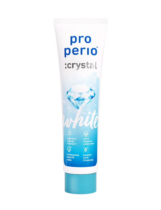 • Kristálygyöngy – gyengéden eltávolítja az elszíneződéseket, és ragyogó hatást kölcsönöz a fogaknak